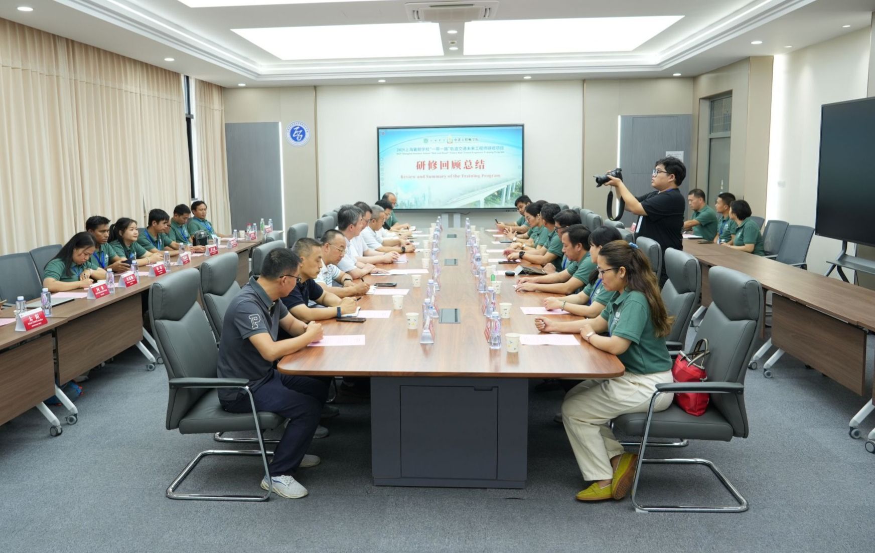 9月5日下午,2025上海国际暑期学校“一带一路”轨道交通未来工程师研修班结业典礼在校举行,校长汪小帆出席仪式。党政办公室、国际交流处、智能技术学部相关负责人及授课教师代表参加。