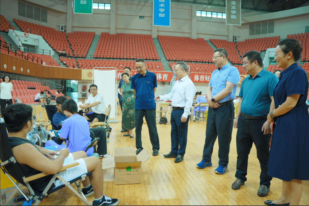 在师生献血期间,学校党委书记郭庆松、校长汪小帆、副校长王占勇以及相关职能部门负责人、学院领导亲临现场,向参与献血的师生们表达了深切的关怀与问候,表达了对同学们奉献精神的感谢与肯定。