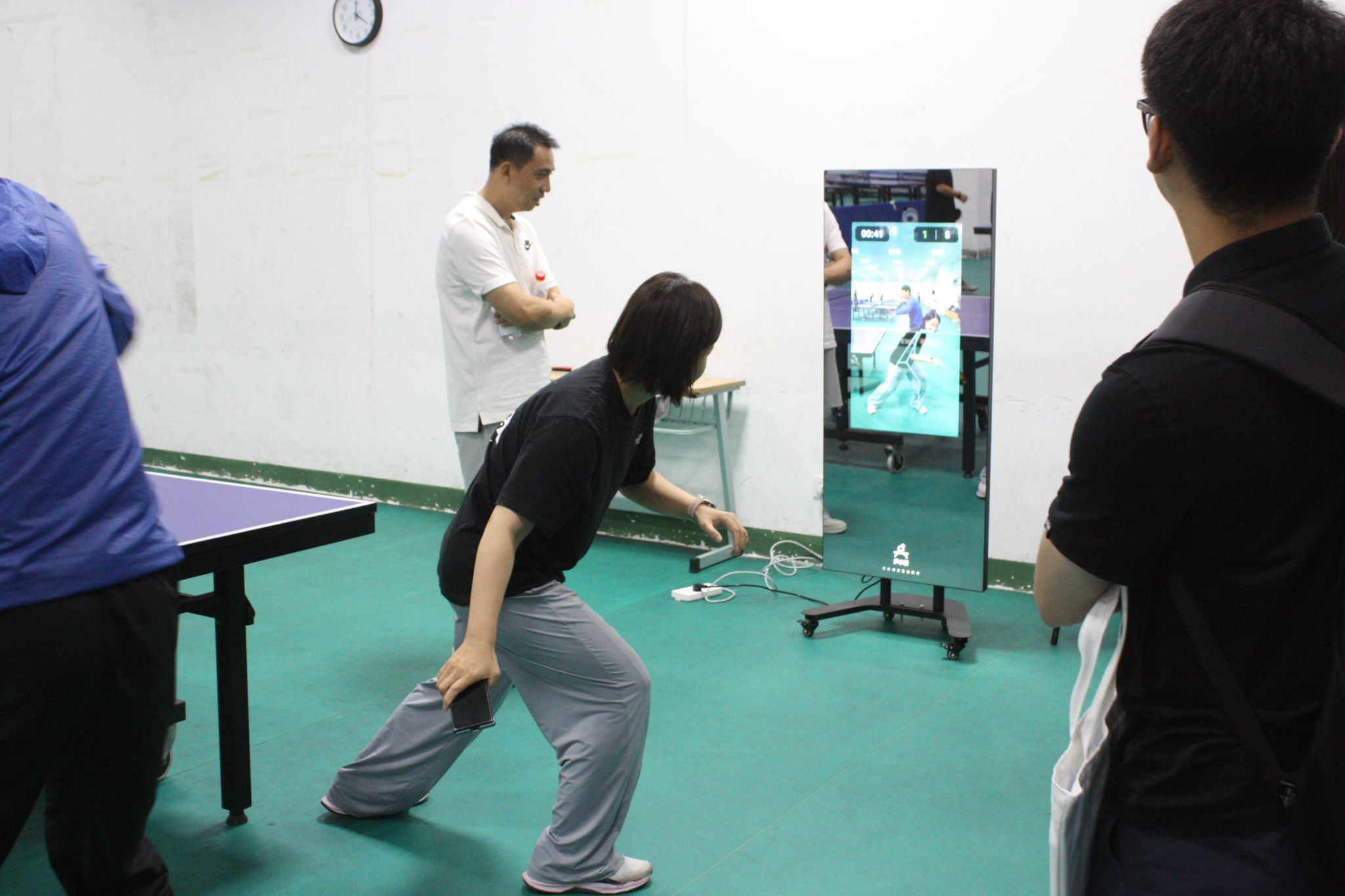 乒乓球教学:华东理工大学李卓明教练采用“互动+科技”双轨模式示范,现场组织“迷你对抗赛”,课程融入现代科技,生动展现了体育教学的创新发展。