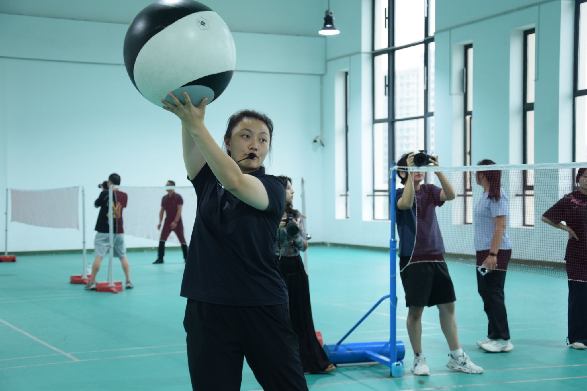 柔力太极球教学:华东师范大学杨建营教授手持柔力太极球,通过慢动作示范与球体控制要点讲解,学生们直观感受到传统运动“刚柔并济”的魅力。
