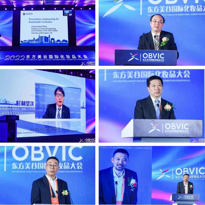主题演讲环节,英国皇家工程院院士、伯明翰大学教授、我校特聘教授张志兵,上海市曙光医院皮肤科主任、博士生导师张慧敏教授,日本城西国际大学校长、公益社团法人日本药剂学会原会长、日本香妆品学会原副理事长杉林坚次教授,上海中医药大学博士生导师李医明教授,我校生物工程专业荣绍丰教授,上海相宜本草化妆品股份有限公司研发副总裁吕智分别就可持续化妆品配方工艺技术、皮肤屏障的构成与修护、DX时代化妆品与药妆品的现在与未来、新形势下中药提取物在化妆品中的应用、微生物发酵技术在化妆品绿色原料研制中的应用、特色植物活性物研究等问题作报告。