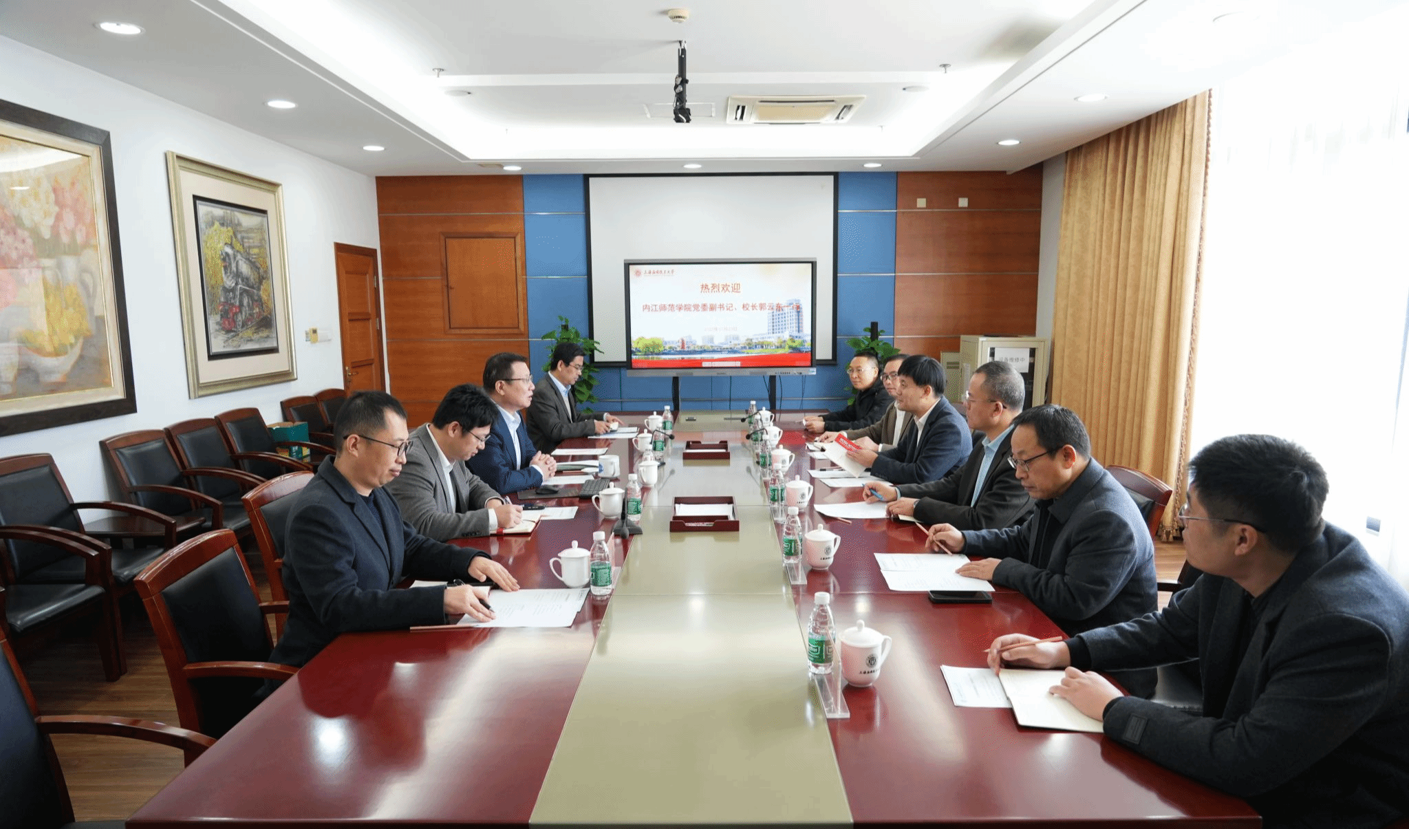 11月25日,内江师范学院党委副书记、校长郭云东一行来访我校。校长汪小帆、副校长吴志军热情接待,双方进行座谈交流。