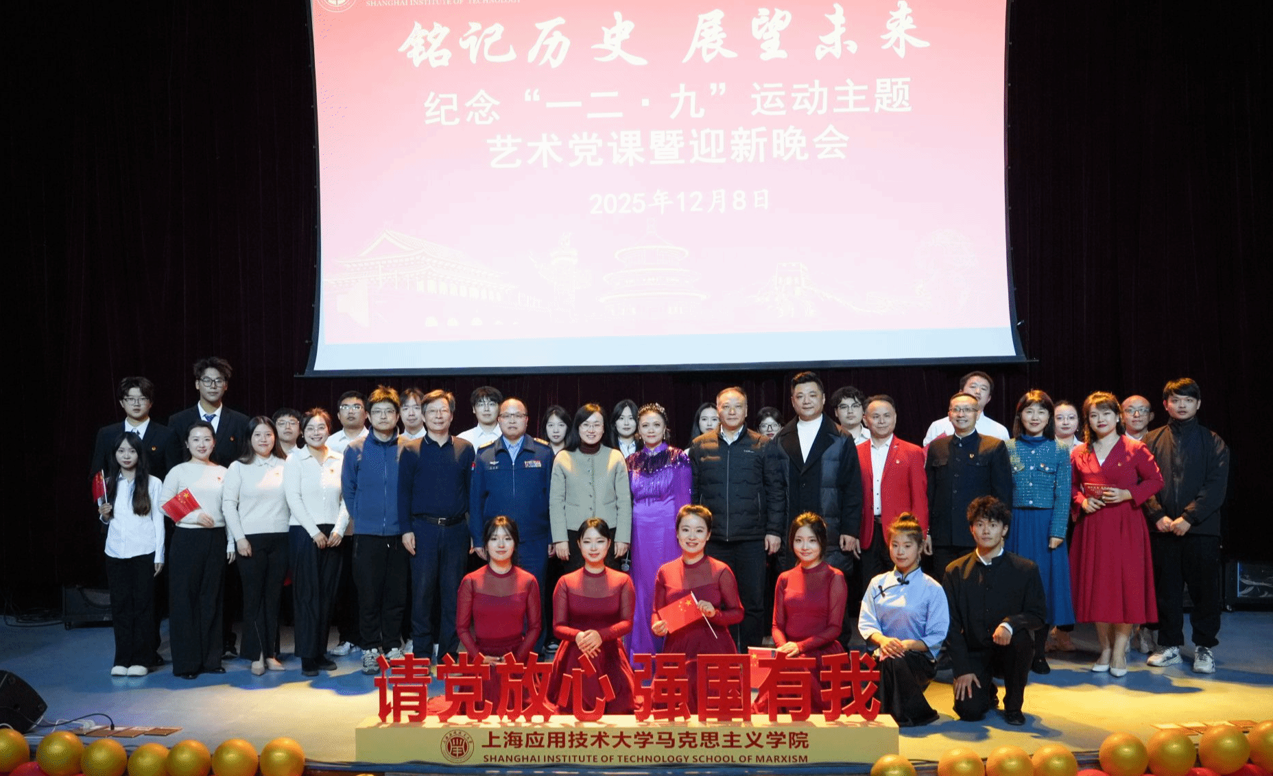 12月8日晚,“铭记历史,展望未来——纪念‘一二·九’运动”主题艺术党课举行,活动由马克思主义学院主办,马克思主义学院团委、研究生会、知行学社承办。校党委副书记、副校长王瑛,党委常委、宣传部部长杨明,空军驻奉某部政治委员吴木杨及其部队官兵,上海成才教育学院、上海开放大学附中成才教学点舞蹈学院任飞校长及其舞蹈团队,上海市群众文艺指导员、马克思主义学院兼职研究生实践导师周国良老师,马克思主义学院领导班子、全体研究生、教师代表与特邀嘉宾出席活动。