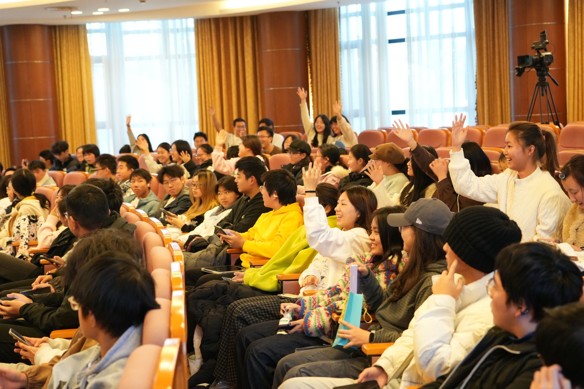 徐海琼还分享了薰衣草精油在失眠舒缓、伤痛护理等20余种生活场景中的妙用,让在场师生直观感受到香料科技的实用价值。当谈及阔别47年重返新疆,在无垠的薰衣草花海中凝望父亲铜像的瞬间,她几度动容。那句父亲生前的谆谆寄语——“克服骄娇两气,把喜欢的事做到极致,生命就有意义”,更是直击人心,引发全场师生强烈共鸣。互动环节中,学子们踊跃提问,现场气氛热烈真挚。