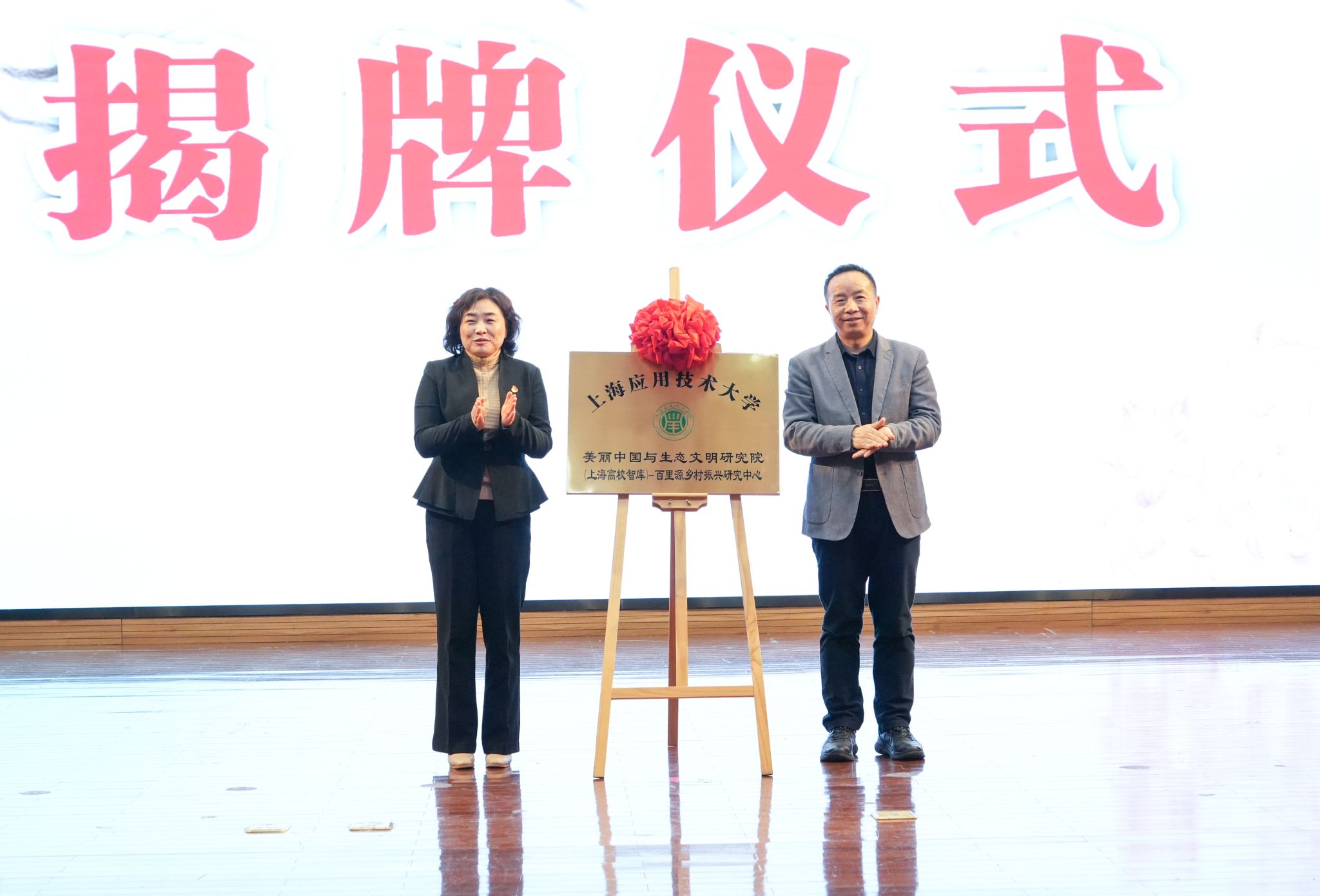 颁奖仪式现场同步举行的校地合作签约、授牌及揭牌仪式,标志着双方人才培养合作进入新阶段。校地双方正式签约共建 “百里源乡创学院”、为“美丽中国与生态文明研究院(上海高校智库)-百里源乡村振兴研究中心”揭牌。