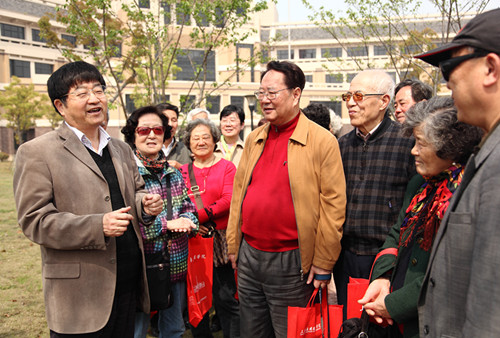 4月25日,校园里阳光明媚,一声声的问候和久别重逢的笑语处处回荡。化专63级校友返校聚会活动在奉贤校区举行,近30位校友参加聚会。党委书记、校教育发展基金会理事长祁学银出席校友纪念树认养仪式。校长、校友会会长卢冠忠出席校友座谈会并和校友合影留念。