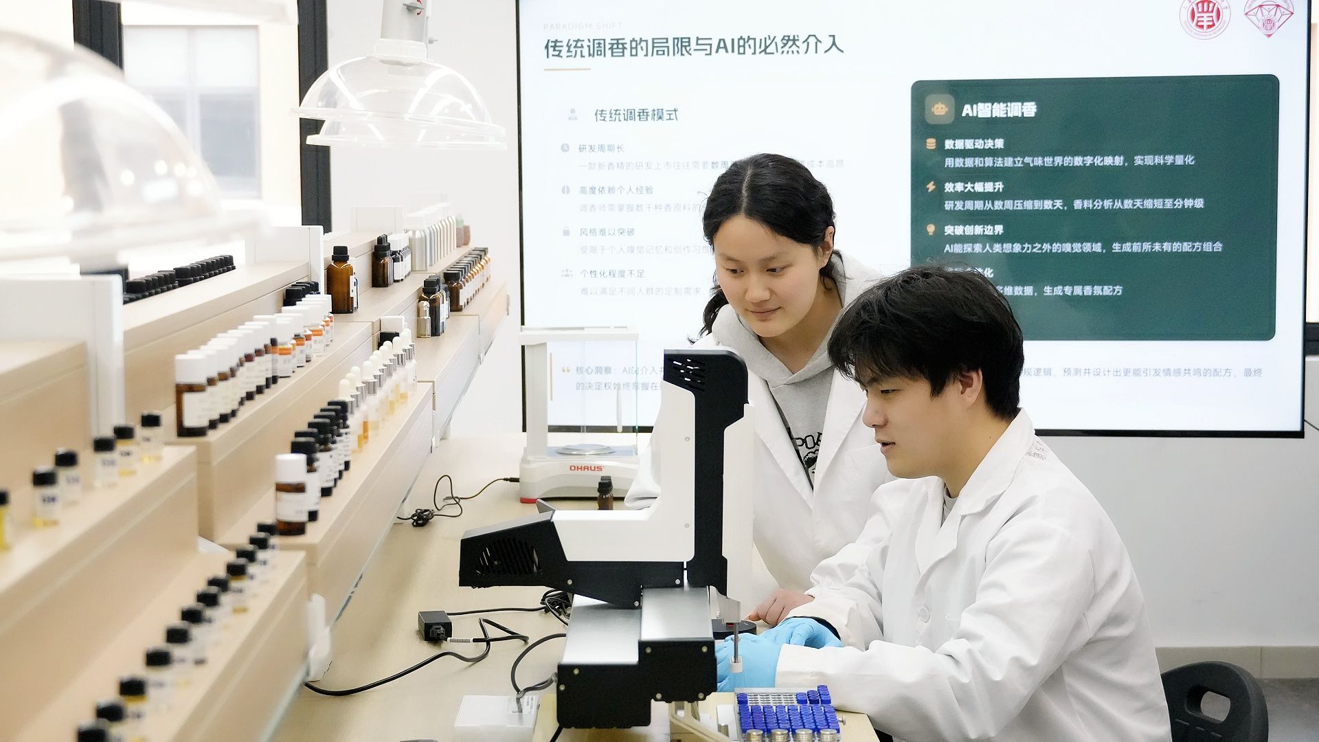“AI是高效精准的执行者,调香是富有温度的创作者。我们希望以‘人机协同’来创新调香师培养范式,通过AI赋能快速增强学生的调香技巧,同时让香精的研发周期和研发成本快速下降。”AI+创香研究中心主任寇兴然教授说。