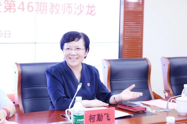 在集体观看了《习近平的教师情》专题片、与青年教师代表亲切交流之后,柯勤飞分享了自己的体会:习近平总书记高度重视教师队伍建设,多次对青年教师给予殷切嘱托,我们身为人民教师,无上光荣。学校从快速发展阶段转向高质量发展,迫切需要青年教师传承办学理念和特色优势,推动学校创新发展。学校坚持“人人皆有发展计划,人人都有出彩机会”的理念,不断完善教师专业发展体系,从职称晋升、待遇保障等多方面竭力支持青年教师成长成才。