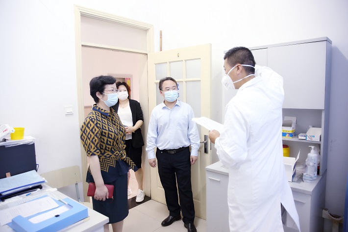 在医务室和校内临时隔离点,校领导查看校内就医流程,发热、咳嗽等症状人员留观处置情况,实地检查隔离点信息台账、三区两通道设置、视频监控等技防措施、隔离房间消毒消杀、垃圾处置等工作情况。校领导要求,要加强在校人员症状检测,加强隔离点分区管理和严格消杀,确保有异常及时发现,及时处置。