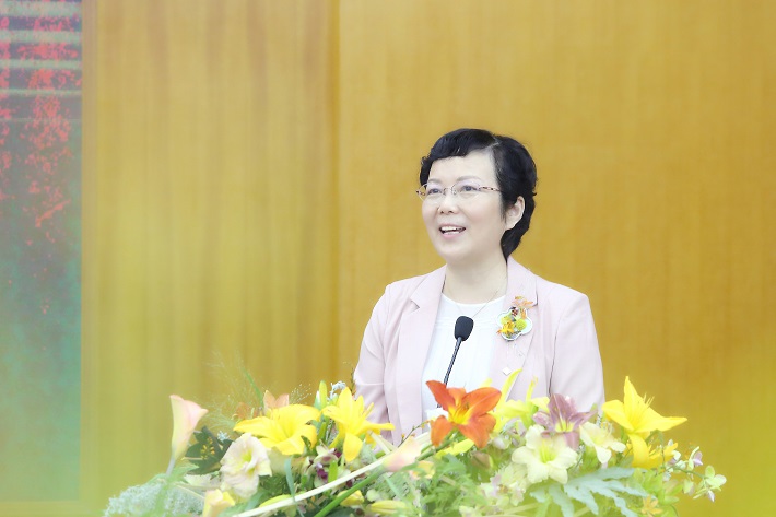 柯勤飞代表学校致辞时,衷心感谢各单位积极参与举办“萱草文化节”。她表示,我校坚持以萱草为媒,筑文化之魂,滋厚德之养,强科技之要,创时代之新,推进科技创新助力生态文明建设,小黄花释放出巨大产业能量。我校持续挖掘凝练萱草花的时代文化价值和意蕴,深度融入课程思政教育教学,研发出萱草香氛产品、高端芳香床品等系列衍生产品,萱草文化通过科技创新呈现出独特的体验。我校将继续推进萱草研究和推广,让之真正成为应用创新的科技之花、富民兴农的产业之花、民族复兴的梦想之花。