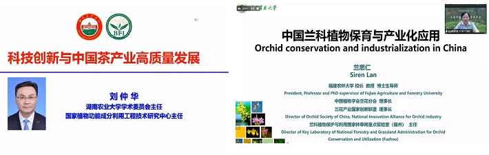 刘仲华作《科技创新与中国茶产业高质量发展》开幕式特邀学术报告。兰思仁作《中国兰科植物保育与产业化应用》闭幕式特邀学术报告。