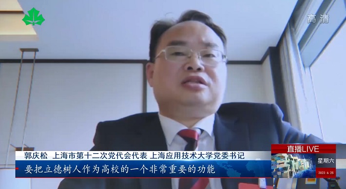上海应用技术大学党委书记郭庆松参加市第十二次党代会。作为党代表,郭庆松以饱满热情参加会议,在团组审议中积极发言、在媒体采访中畅谈体会、在党报媒体中亮明观点。