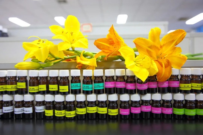 此次研发的萱草香氛淡雅、清新,极具东方柔曼气息和韵味。前调的萱草花香和天然草木青香气息,带来一种非凡的清新感觉,纯净而自然;中调以茉莉、玫瑰、铃兰的经典花香调幻化的芬芳气息,柔和高贵,符合东方审美;后调木香和麝香共同呈现,带有一点点皂感,具有春风袭来的感觉,香调清新、洁净。