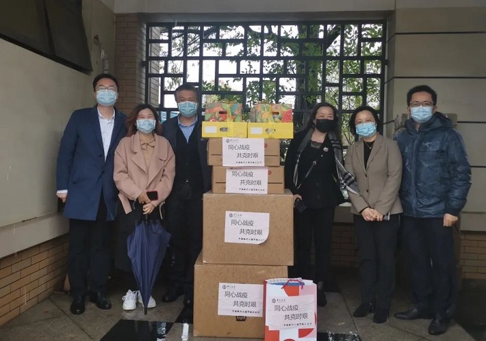 4月14日,学校89届有机合成化工专业校友钱建中先生捐赠的防疫物资,包括10万个医用外科口罩、6万个抗原检测试剂盒、2000件白色防护服、2000个N95口罩、2000副医用橡胶检查手套,价值达70万元,分三批运至母校奉贤和徐汇两个校区。