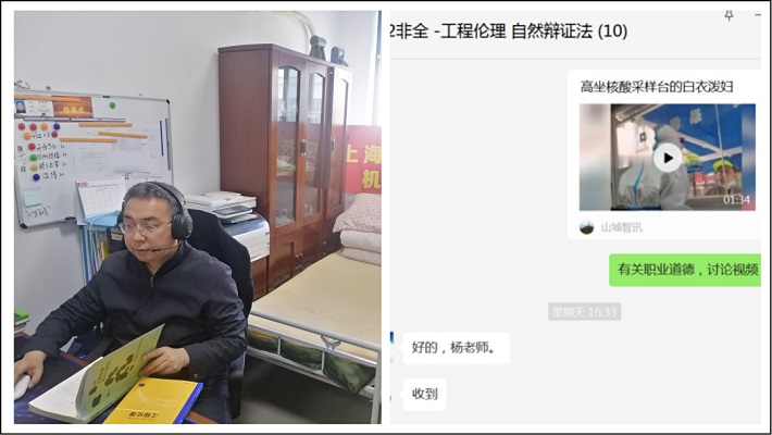 马克思主义学院教师组《工程伦理》紧密结合当下疫情防控情况,针对性地展开了涉及生物工程、医药工程、食品工程、环境工程、信息工程和职业伦理等方面的深入探讨,将战“疫”行动成为线上教学鲜活的思政教育素材,引导研究生们关注社会热点,提升社会责任和担当意识。