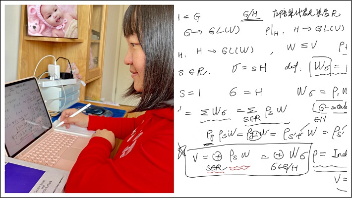 郭琼老师《有限群表示论》有着理论性强、公式推导多、逻辑思维严密等学科特点,为保证云端教学效果,将“黑板变白板”,在直播教学全过程融入问答环节,实时了解检验教学效果,课后给出复习建议和参考资料,方便学生巩固提高,找准学习兴趣点,引导学生热爱专业。