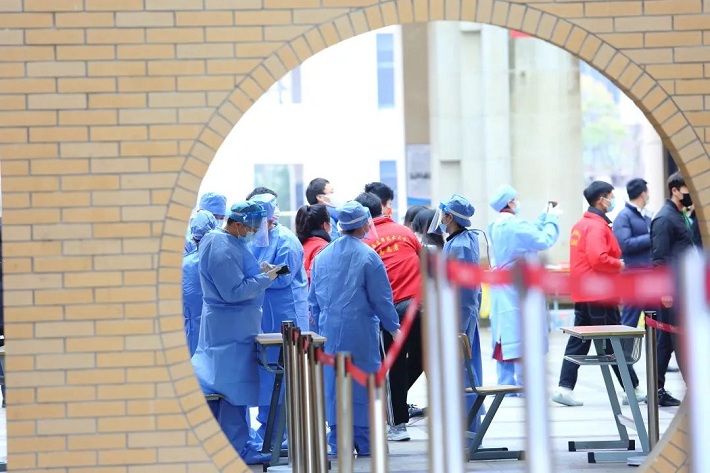 连日来,学校核酸检测工作高效进行、秩序井然,已完成第一轮、第二轮、第三轮核酸检测,在第二教学楼、大学生活动中心等检测点,师生们整齐排队,安静有序。医护人员全力投入紧张的检测工作中,广大师生密切配合。身份验证、咽拭采样、耐心等待,医护人员和师生员工用行动配合防疫,用理解传递友爱。