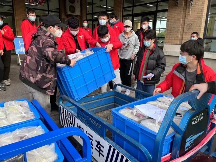 志愿者冲锋在前,广大学生志愿者火速集结,奔赴各自工作岗位。核酸检测、后勤保障、安全排查……处处都活跃着志愿者红马甲的身影。“志愿红”在的地方,就有温暖和力量;他们默默奉献,全力以赴、任劳任怨,共同守护上应校园,用行动和担当诠释了当代大学生的风采。