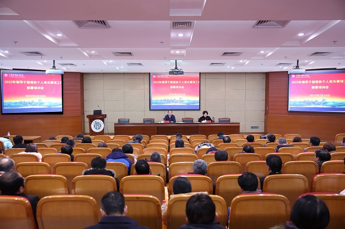 为进一步加强干部监督管理,切实做好领导干部报告个人有关事项工作,推动全面从严治党向纵深推进,2月18日下午,学校召开2022年领导干部报告个人有关事项工作部署培训会议,校党委书记郭庆松出席并讲话,校党委副书记陈海瑾主持会议。