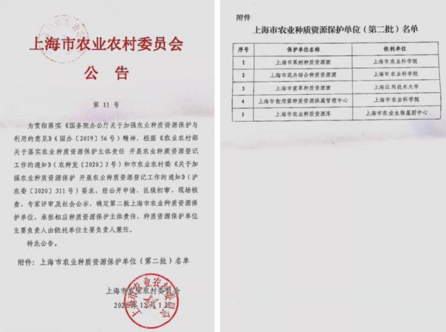 本次上海市农业种质资源保护单位的筛选,是贯彻落实《国务院办公厅关于加强农业种质资源保护与利用的意见》精神,根据《农业农村部关于落实农业种质资源保护主体责任 开展农业种质资源等级工作的通知》和上海市农业农村委《关于加强农业种质资源保护 开展农业种质资源登记工作的通知》要求,经公开申请、区级初审、现场考察、专家评审以及社会公示各环节严格把控后确定下来的。
