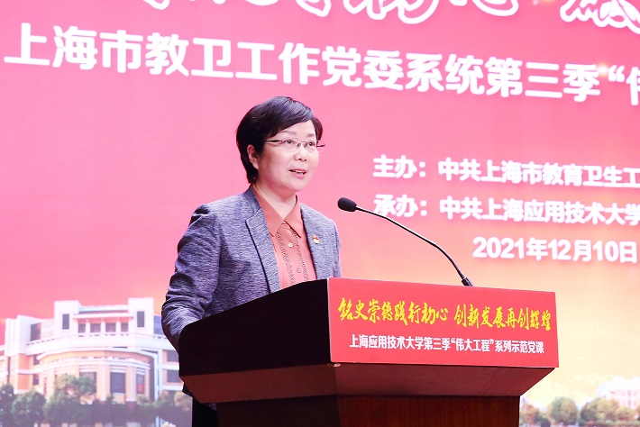 以史为鉴、开创未来。为深化党史学习教育,践行伟大建党精神,落实学校第四次党代会精神,奏响“十四五”奋进序曲,12月10日,上海市教卫工作党委系统第三季“伟大工程”示范党课之“铭史崇德践行初心 创新发展再创辉煌”主题党课在上海应用技术大学开讲。