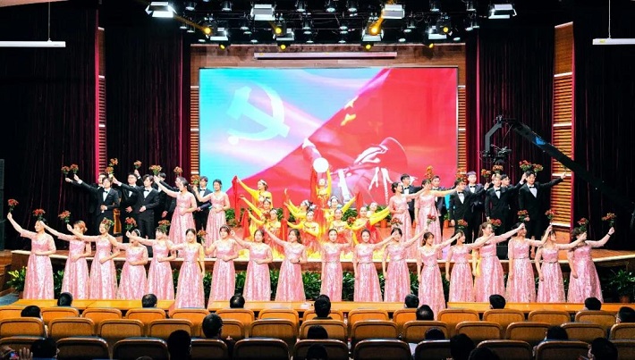 党课围绕“初心如磐 扎根中国大地办大学”“深耕沃土 忠诚教书育人大事业”“强国有我 走在伟大复兴大道上” 三个篇章展开,通过现场讲述、视频展示、情景表演等形式,内容丰富、形式生动,回顾了学校的创建、转型与发展史,激情讲述了上应大党组织和党员队伍坚守初心、勇担使命的家国情怀和砥砺担当。