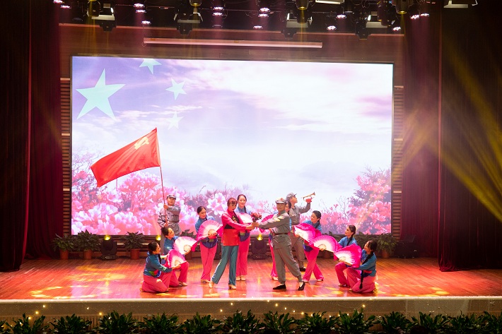 外国语学院带来的主题舞蹈《映山红》,通过典型的人物、故事情节表现出了一种深深的革命情结和伟大的革命精神,给现场观众呈现出奋发向上的精神力量;继教学院教工表演的舞蹈《灯火灿烂中国梦》,一唱一跳之间把老师们热爱祖国的满腔深情一一展现,为现场观众营造出一种万家团圆、和气满满的感觉;计算机学院带来的诗伴舞《读中国》,通过鲜活的文字和灵动的舞蹈,带领观众在古老的方块字里一起欣赏中国的传统文化,领略中国的美;材料学院教工表演的舞蹈《灯火里的中国》,表达出“迎着太阳,我们铺开七彩的画卷;走向未来,我们书写豪迈的誓言”的爱国主义精神;艺术学院带来的原创手语诗朗诵《我宣誓》,彰显了“入党誓言是每位党员庄严神圣的诺言,一旦说出就注定要用生命来撑起它的重量,这也是每一位教育工作者永恒的承诺”的崇高主题;化工学院教工表演的舞蹈《最美华夏》,使现场观众深切感受到红色宣言声震华夏、百年荣光代代相传的深刻内涵;城建学院教工表演的合唱《大中国》,表达了“炎黄子孙血脉相传,中华儿女共谱华章;深切颖悟建党精神,共话祖国繁荣昌盛”的爱党爱国情怀;生态学院带来的才艺秀《美丽中国梦》,教工们用旗袍秀和茶艺表演,为观众精彩演绎了美丽的中国梦;机关二分工会的原创舞蹈《十送红军》,表达了苏区人民对红军的依依不舍之情,凸显了军民鱼水情深、革命意志坚定的主题。其他节目也精彩纷呈,令现场观众喝彩不断。