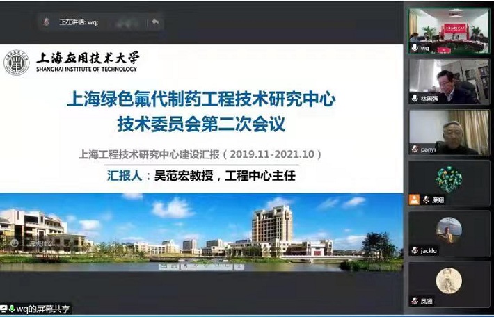 工程中心主任吴范宏从技术成果、人才培养、运行模式、学术交流与社会服务等方面,向技术委员会和共建单位汇报了工程中心建设成果。两年来,工程中心承担了39项国家、省部级科研项目和与企业合作的技术开发项目,拥有1个含氟抗肿瘤候选新药小分子;完成6个含氟仿制药绿色合成工艺的开发;在连续流氟代技术、含氟砌块法技术包括单氟代、二氟代、三氟代等技术开发及应用方面获得多个工程化结果。在工程中心组织运行方面,形成了与企业共建分中心、特色技术/研发基地等互利共赢的可推广模式。