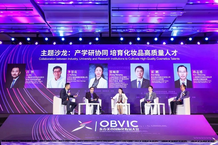 在沙龙环节,专家们围绕“产学研协同,培育化妆品高质量人才”畅所欲言,华熙生物首席技术官李慧良,张婉萍,欧诗漫生物股份有限公司研发中心总经理霍刚,上海西西艾尔启东日用化学品有限公司副总经理孙志勇,就化妆品行业专业人才培养理念与思路、企业对化妆品人才的素质要求、行业人才与企业需求之间的差距、学校在人才培养过程中面临的挑战、怎样培养出满足行业需求的人才等问题展开研讨。