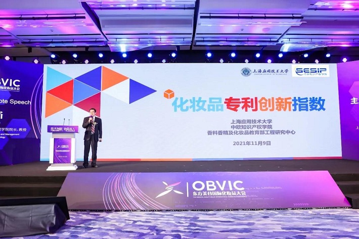 会上,我校经管学院院长熊焰教授发布了《化妆品专利创新指数》,介绍了化妆品专利创新指数的构建思路、原则及指标体系,用数据呈现出专利创新指数各纬度排名前20的企业,并根据专利申请数据识别出化妆品产业两大热点技术。