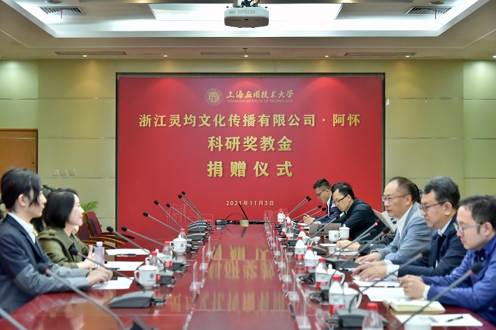 11月3日,我校举行浙江灵均文化传播有限公司科研奖教金捐赠仪式,副校长毛祥东、浙江灵均文化传播有限公司总经理怀希出席。校科技研究院院长韩生主持捐赠仪式。