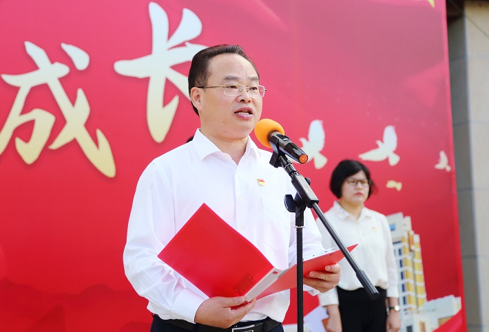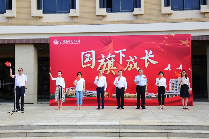 郭庆松在仪式现场发表热情洋溢的讲话,深情地说,有五星红旗的地方,就有信念的灯塔。中国共产党走过了100年波澜壮阔历程,新中国成立72年来创造了一个又一个彪炳史册的人间奇迹。上海应用技术大学始终与国家富强、民族复兴同频共振,一代代上应人听党话、感党恩、跟党走,传承伟大建党精神,发扬“永不放弃、永不言败”奋斗精神,书写了为党育人、为国育才、科技强国的绚丽篇章。