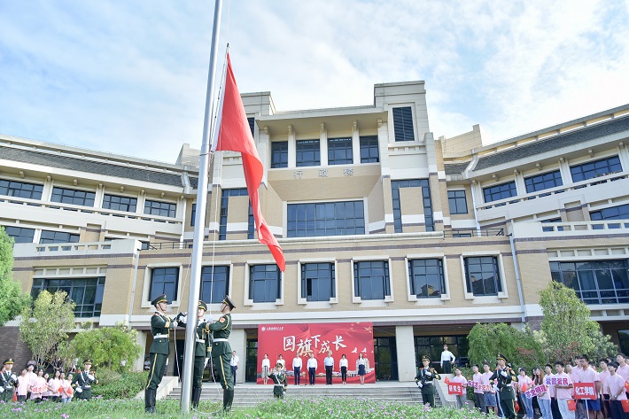 迎着清晨的第一缕阳光,9月30日晨,学校隆重举行“国旗下成长”庆祝中国共产党成立100周年暨新中国成立72周年升旗仪式。校党委书记郭庆松,校党委常委、宣传部部长杨明,人民武装部部长、安全保卫处处长宋明枫、校团委书记周青出席。仪式由党委学生工作部部长、学生处处长袁翔主持。