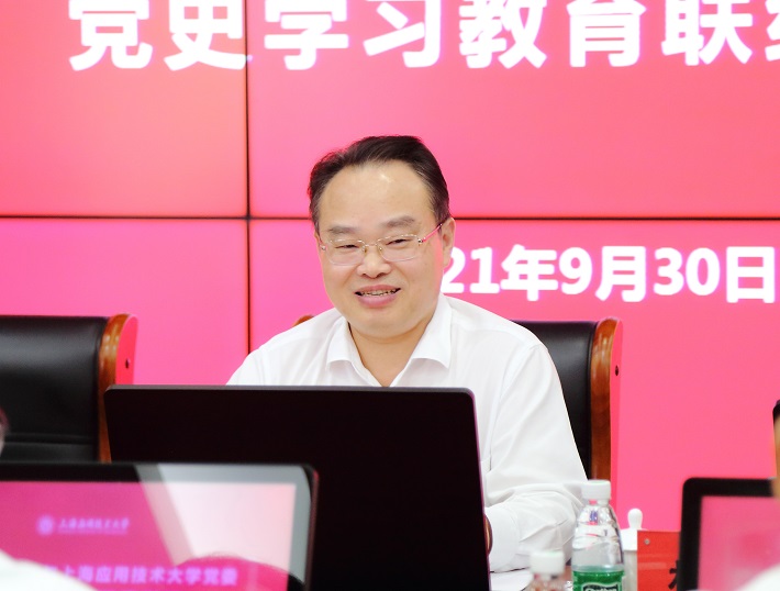 为进一步推进党史学习教育走深走活,创新学习形式,增强学习实效,以高质量学习推动高质量发展,9月30日下午,上海应用技术大学与上海商学院聚焦“统筹推进党史学习教育与学校高质量发展”与“深入学习贯彻习近平总书记在庆祝中国共产党成立100周年大会上的重要讲话精神”两大主题,开展专题联组学习会。