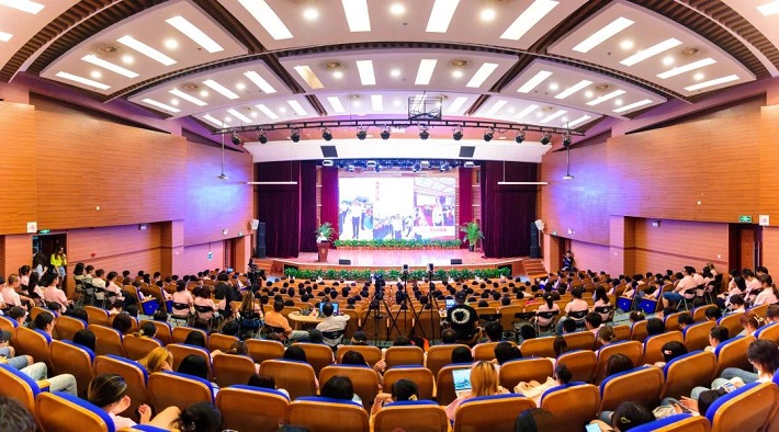 从“忠诠-尔纯”思想政治教育奖的设立,到校徽、校歌的释义;从先贤语迹、大学精神石的落成,到学校视觉识别系统的发布;从“中国(上海)萱草文化节”、“中华母亲节”的举办,到大师剧《祝尔纯》的倾情上演,郭庆松逐一解读上应大的精神标识和文化品牌,他饱含深情地说,“‘厚德精技、砥砺知行’的上应精神、‘永不放弃、永不言败’的上应品格、‘卓而独特、越而胜己’的价值取向,这些是支撑我们勇往直前、跨越发展的宝贵精神财富。”