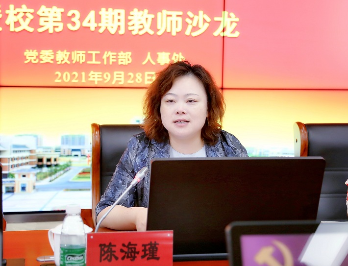 9月28日下午,学校举行深入学习贯彻习近平总书记给全国高校黄大年式教师团队代表重要回信精神座谈会暨第34期教师沙龙。校党委副书记陈海瑾出席并主持会议。校聘岗教师团队负责人、部分学院院长及骨干教师参加座谈会并作交流发言。