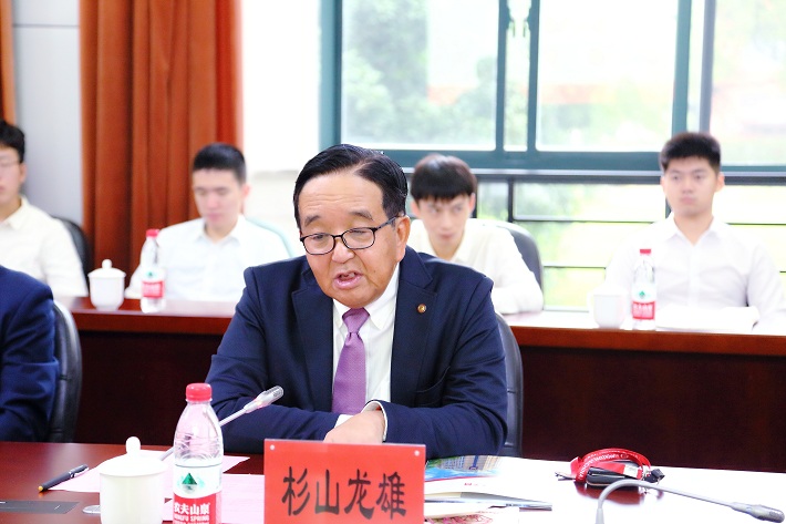 杉山龙雄介绍了日通公司概况以及与中国高校的合作情况,期待校企双方围绕“一带一路”产能升级、风险管理、人才培养等方面开展多角度、深层次的合作和交流,促进优势互补,实现合作共赢!