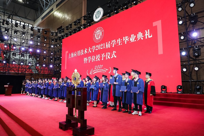 在全场高唱《毕业歌》的嘹亮昂扬歌声里,上海应用技术大学2021届学生毕业典礼暨学位授予仪式圆满结束。