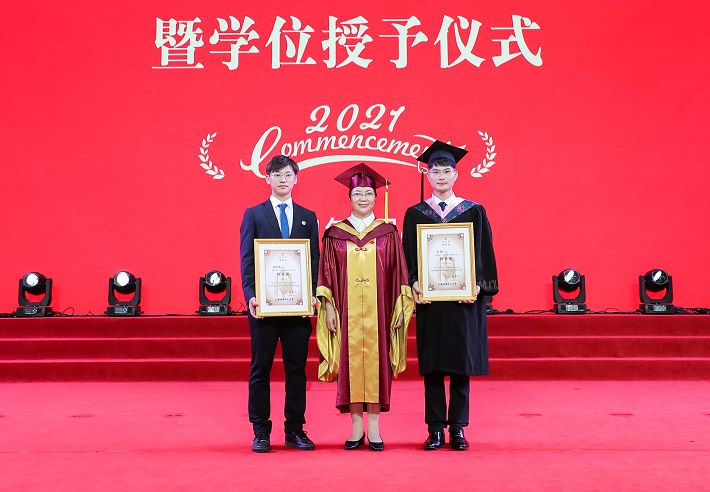 上应学子奋发拼搏、笃志前行,取得了丰硕的成果,涌现了一大批优秀的毕业生代表。城市建设与安全工程学院王瑞、生态技术与工程学院陆亦炜两位同学荣获代表学校最高荣誉的“校长奖”,3名同学(团队)获“校长奖”提名奖,7名同学获“校长奖”入围奖。240名毕业生获得2021年上海市优秀毕业生荣誉称号,451名毕业生获得2021年上海应用技术大学优秀毕业生荣誉称号。