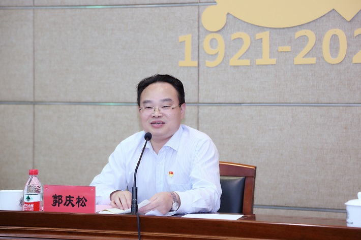 郭庆松表示,习近平总书记在庆祝中国共产党成立100周年大会上的重要讲话,站在政治和战略高度,统揽全局、纵贯百年、远眺未来,深刻阐发了一系列重要思想、重要论断、重要要求,彰显了中国共产党的政治品格、精神谱系、光荣传统、红色血脉,展现了中国共产党的政治担当、历史自觉、人民立场、复兴使命,具有很强的政治动员力、历史穿透力、理论说服力、心灵震撼力,为全党全国各族人民指明了前进方向、提供了根本遵循,是向第二个百年奋斗目标进军的政治宣言和行动纲领。习近平总书记讲话的主要内容和精髓要义可以用“1141911”来高度概括,即“一个庄严宣告”、“一个主题”、“四个伟大成就”、“一个伟大建党精神”、“九个必须”、“一个寄语”、“一个号召”。