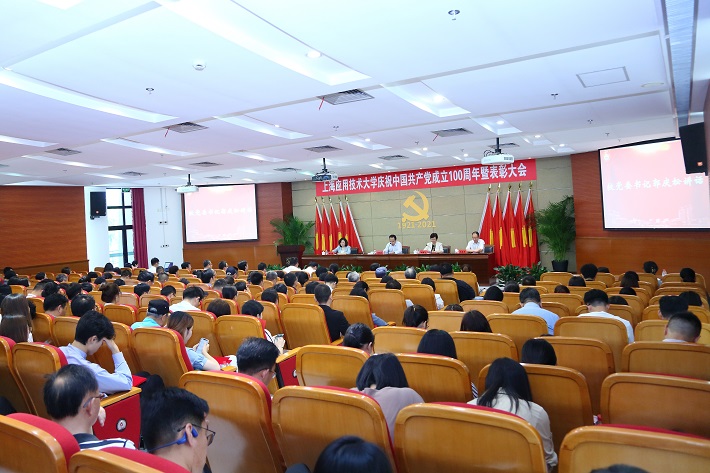百年征程谱华章,赓续奋斗启征程。在举国上下热烈庆祝中国共产党成立100周年之际,7月5日下午,上海应用技术大学召开庆祝中国共产党成立100周年暨表彰大会,传达学习习近平总书记在庆祝中国共产党成立100周年大会上的重要讲话精神,表彰在党的建设工作中表现突出的先进集体和先进个人。校党委书记郭庆松作重要讲话,校长柯勤飞主持大会。校党委副书记陈海瑾、副校长毛祥东出席会议。