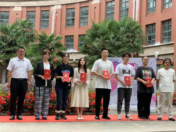 开幕式上宣读了艺术学院2021届优秀毕业设计获奖者名单,王占勇、李哲虎分别为获奖学生颁奖。教师代表王卓和毕业生代表廉恩泽在发言中回顾了此次毕业设计的选题和创作过程。