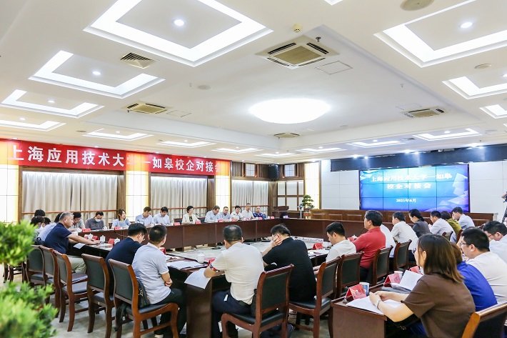为深入贯彻落实长三角一体化发展国家战略和校市全面深入合作,进一步推动我校优势科技资源落地发展,6月16日,上海应用技术大学-如皋市校企对接会在如皋市行政中心举行,校长柯勤飞率队出席,如皋市委书记何益军、市长王鸣昊、市委常委陈鸣华、副市长顾凡、林文美热情接待。双方就深化产学研合作路径、提升科技服务能级、落实科技创新赋能经济高质量转型发展进行深入交流洽谈。
