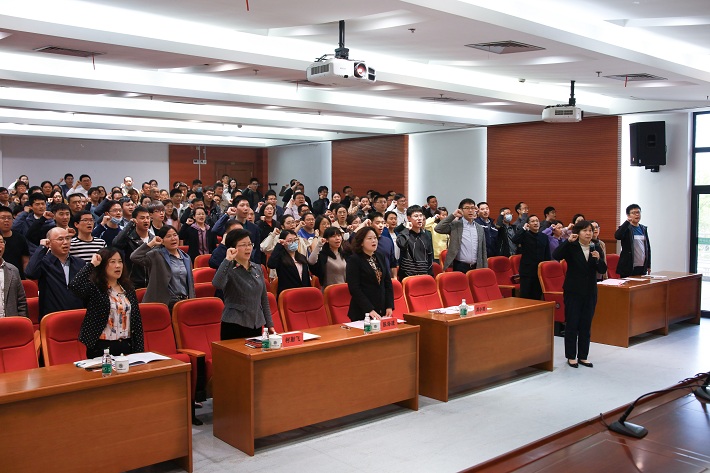 机械学院教师逯代兴代表新进教师发言,分享了入职以来的经历和体会,代表全体新进教师郑重承诺:爱校敬业,提升师德修养;深悟教学之道,践行教书育人;潜心科学研究,努力开拓创新;投身社会服务,奉献青春年华。