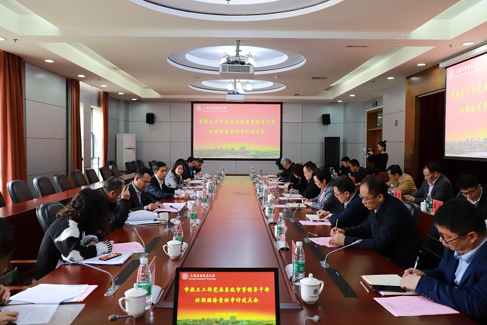 4月2日,市教卫工作党委系统市管领导干部任期经济责任审计进点会在徐汇校区召开。市教卫工作党委副书记滕建勇、组织干部处副处长王庆宇,市教委审计处处长方涛、副处长万敬,校党委书记郭庆松,校党委副书记、校长柯勤飞等校党政领导班子全体成员出席会议,市教委和学校相关职能部门负责人、审计组专家参加会议。王庆宇主持会议。