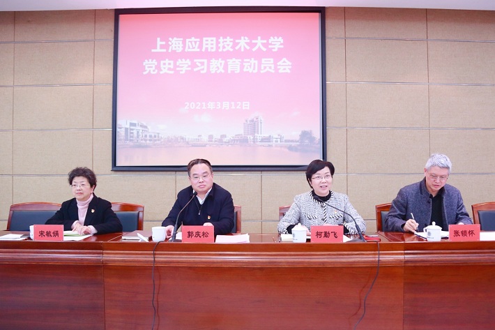 校党委书记郭庆松作动员部署讲话,校党委副书记、校长柯勤飞主持动员会,校党委副书记宋敏娟传达中央和上海市党史学习教育动员会精神,通报学校2020年“四史”学习教育情况。