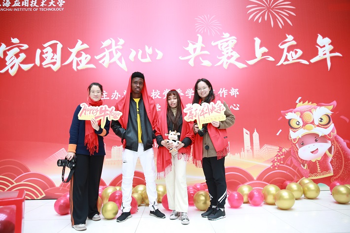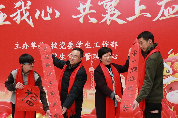 同学们的脸上洋溢着新春的快乐,纷纷把美好祝福送给师长,老挝留学生书写“春联”,祝愿上应师生“牛年大吉”。精心安排的心愿墙、拍照区,也记录下了温暖、祥和、难忘的时刻,大家共同感受到“年的味道”和“家的温暖”。