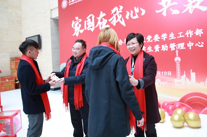 2月10日是农历年廿九,我校徐汇校区图书馆一楼大厅张灯结彩,欢声笑语,主题为“家国在我心 共襄上应年”的寒假留校学生新春团拜会在这里热烈举行。校党委书记郭庆松、校长柯勤飞、党委副书记宋敏娟与留校学子欢聚一堂,共叙新春。