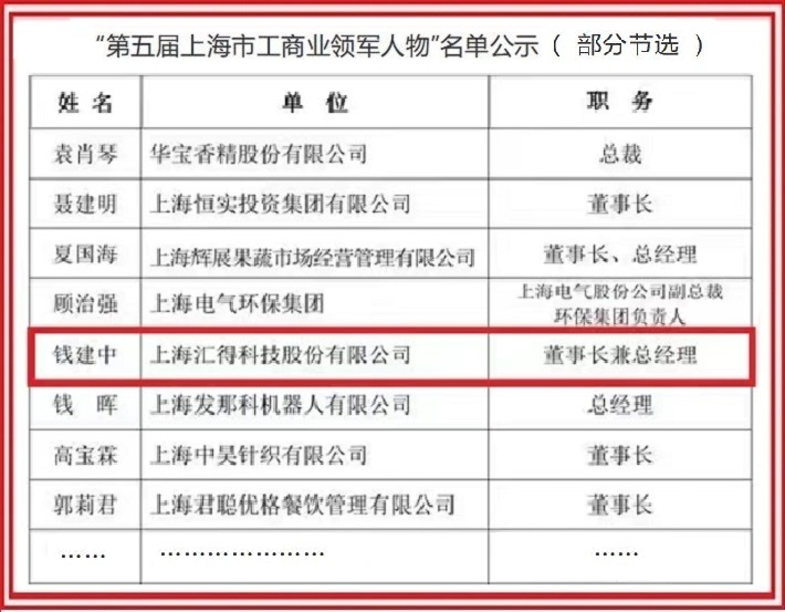 近日,上海市第五届工商业领军人物表彰交流会在上海市政协隆重举行,我校校友、上海汇得科技股份有限公司董事长兼总经理钱建中等62名优秀企业家获评为“上海市第五届工商业领军人物”。