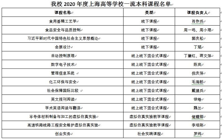 近日,上海市教委发布《关于公布2020年度上海高等学校一流本科课程认定结果的通知》(沪教委高〔2021〕5号),我校共有14门课程获得认定,其中线下课程4门,线上线下混合式课程7门,虚拟仿真实验教学课程2门,社会实践课程1门。获批课程总数位居上海市属高校第4名、应用技术型高校第1名,混合式课程获批门数仅次于复旦大学,在所有申报高校中名列第二。学校取得2021年教学内涵建设开门红。